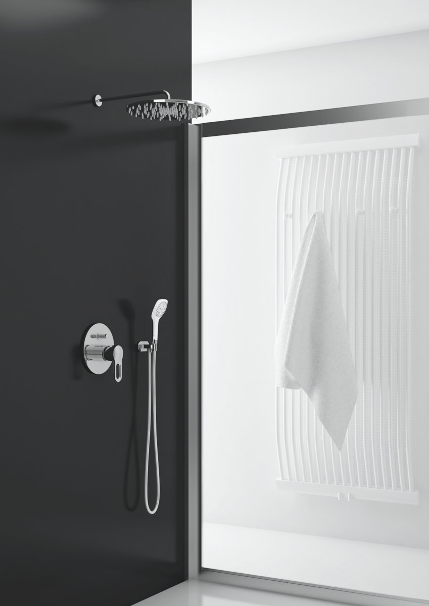 Kompletna bateria podtynkowa natryskowa, z przełącznikiem na dwa źródła wody.