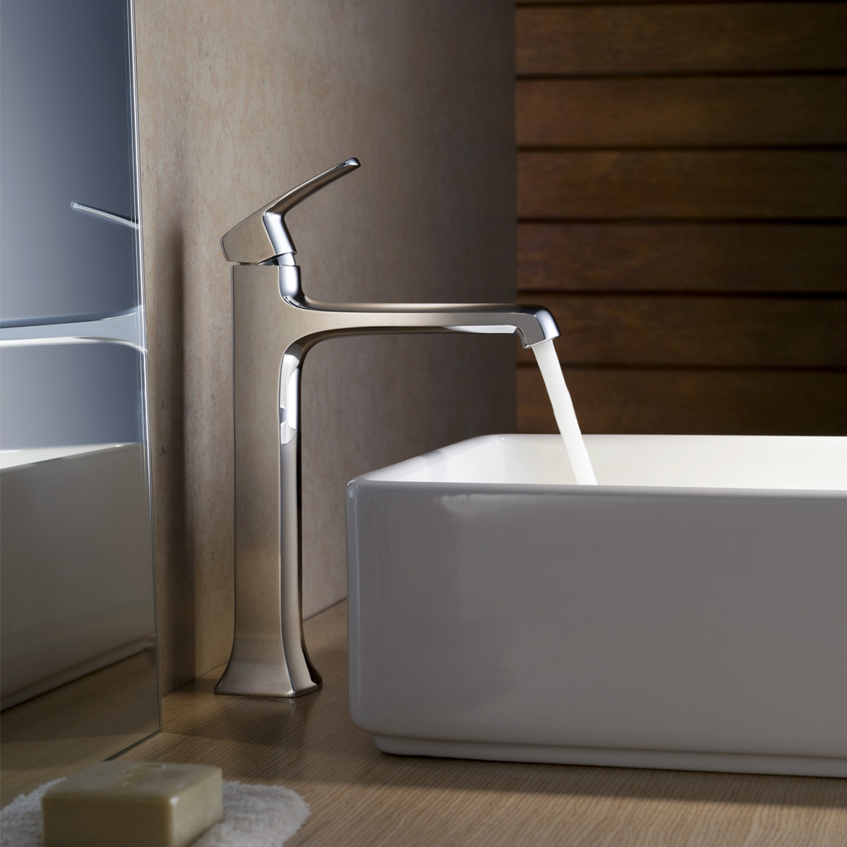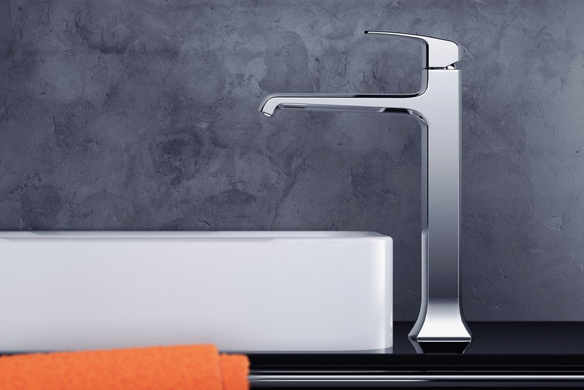 Bateria umywalkowa wysoka linii AXEL. Wykonana z mosiądzu pokrytego chromem. Pozwala na dużą oszczędność wody dzięki użyciu odpowiedniej jakości elementów uznanych marek (głowica Sedal oraz perlator Neoperl)