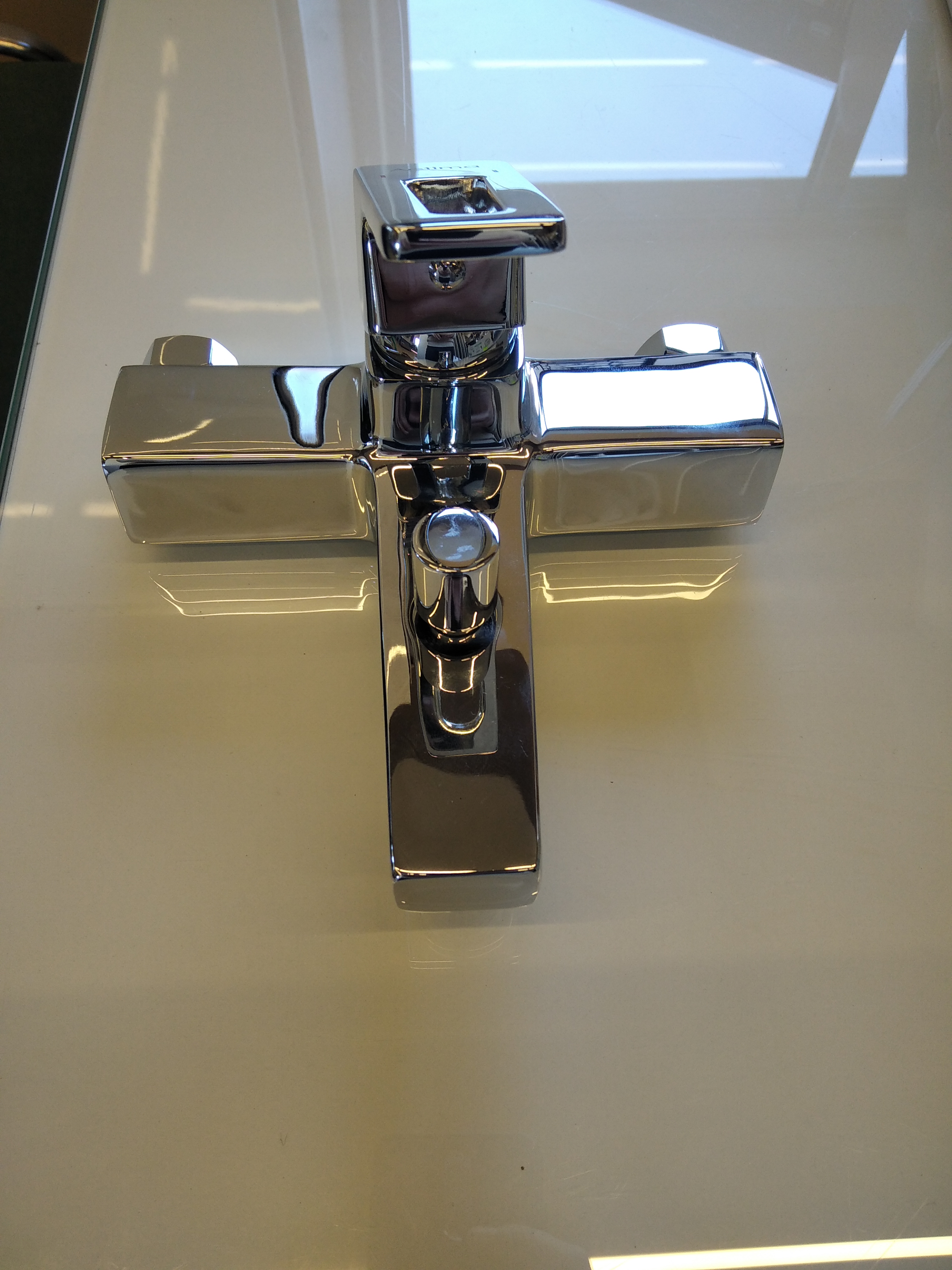 Nowoczesna, chromowana bateria wannowa w prostym, kwadratowym kształcie. Idealnie pasuje do minimalistycznej łazienki. Solidne wykonanie i elegancki wygląd zapewniają długotrwałe użytkowanie.