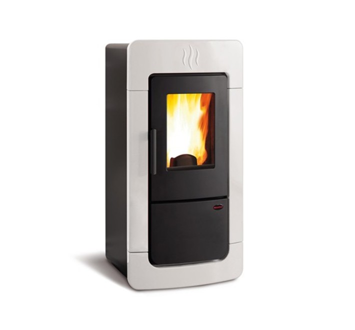 Obudowa piecyka wykonana z ceramiki – boki, góra i front. Dostępny w kolorach: bordo, biały. Panel sterujący z wyświetlaczem LED, duża nowoczesna szyba. Palenisko oraz drzwiczki żeliwne, wyjmowany popielnik, pilot.