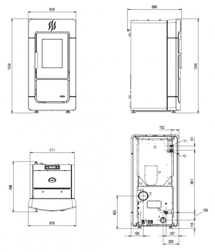 Piec wolnostojący na pellet z płaszczem wodnym. Przeznaczony do ogrzewania całego domu systemem CO, z możliwością produkcji CWU (za pomocą dodatkowej płyty sterującej). Piecyk wyposażony z pompę obiegową, naczynie przeponowe oraz zawór bezpieczeństwa 3 bary – do montażu w układzie zamkniętym.