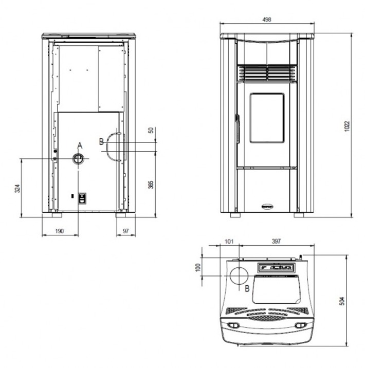 Obudowa piecyka wykonana z emaliowanej stali – boki oraz ceramiki – góra, w kolorach: bordo, beżowym lub czarnym. Panel sterujący typu RED. Palenisko oraz drzwiczki żeliwne, wyjmowany popielnik, wbudowana sonda pomiaru temperatury w pomieszczeniu. Autonomia pracy ciągłej do 25 godzin.