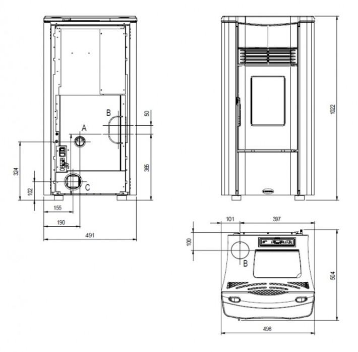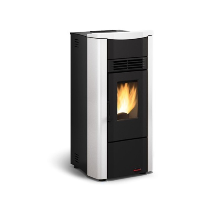 Piec wolnostojący na pellet z możliwością rozprowadzenia powietrza do innych pomieszczeń. Piecyk wyposażony w dwa wentylatory: pierwszy wydmuchuje ciepłe powietrze do pomieszczenia z piecykiem, drugi wydmuchuje ciepłe powietrze do systemu DGP. Obudowa piecyka wykonana z emaliowanej stali – boki oraz ceramiki – góra, dostępny w kolorach: bordo, beżowym lub białym. Panel sterujący z wyświetlaczem RED. Palenisko oraz drzwiczki żeliwne, wyjmowany popielnik, wbudowana sonda pomiaru temperatury w pomieszczeniu, pilot*.