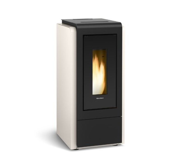 Panel sterujący z wyświetlaczem LED, duża nowoczesna szyba. Palenisko oraz drzwiczki żeliwne, wyjmowany popielnik, pilot. Autonomia pracy ciągłej do 33 godzin.