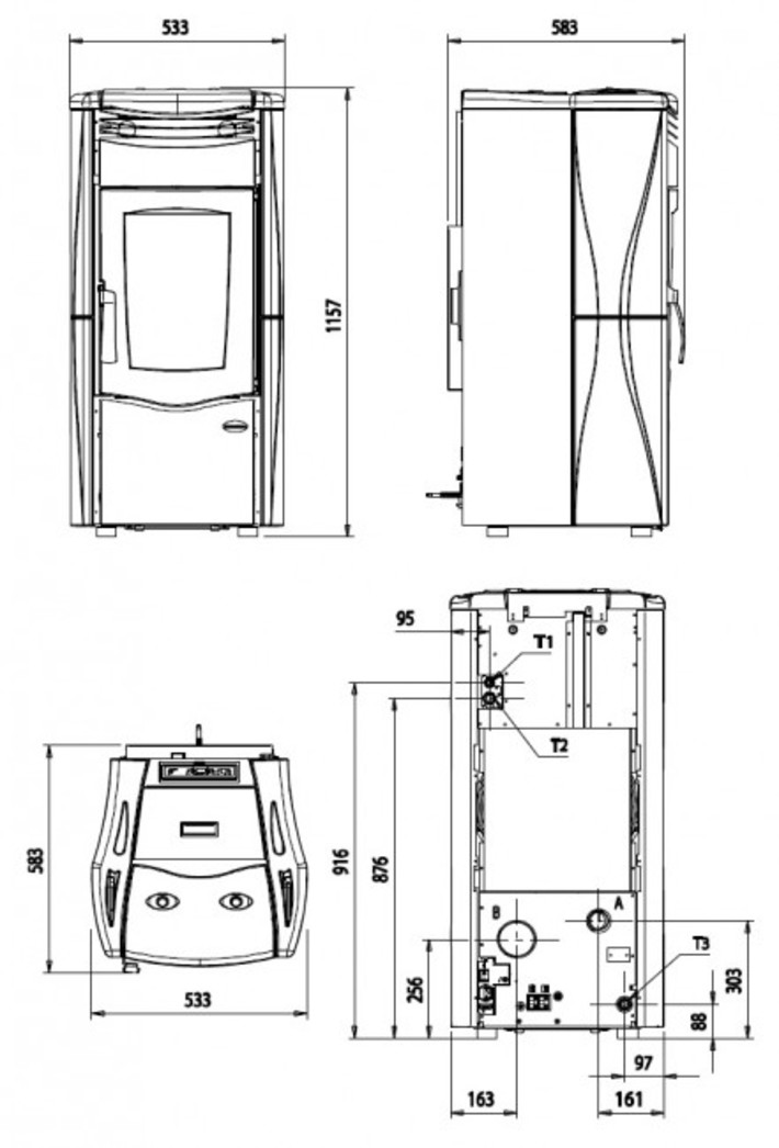 Piecyk wolnostojący na pellet z płaszczem wodnym, przeznaczony do instalacji w systemie centralnego ogrzewania (grzejniki lub podłogówka) oraz produkcji ciepłej wody użytkowej do zasobnika, kominek może również współpracować ze zbiornikiem buforowym lub innym źródłem ciepła (za pomocą zewnętrznej płyty sterującej – opcja). Piecyk wyposażony z pompę obiegową, naczynie przeponowe oraz zawór bezpieczeństwa 3 bary – do montażu w układzie zamkniętym.