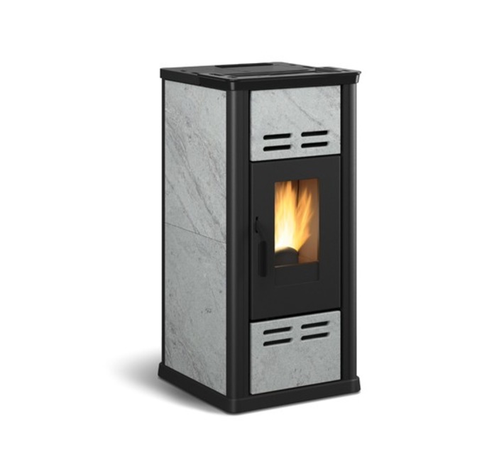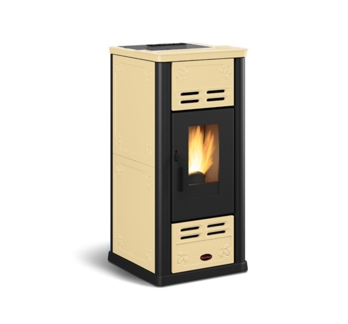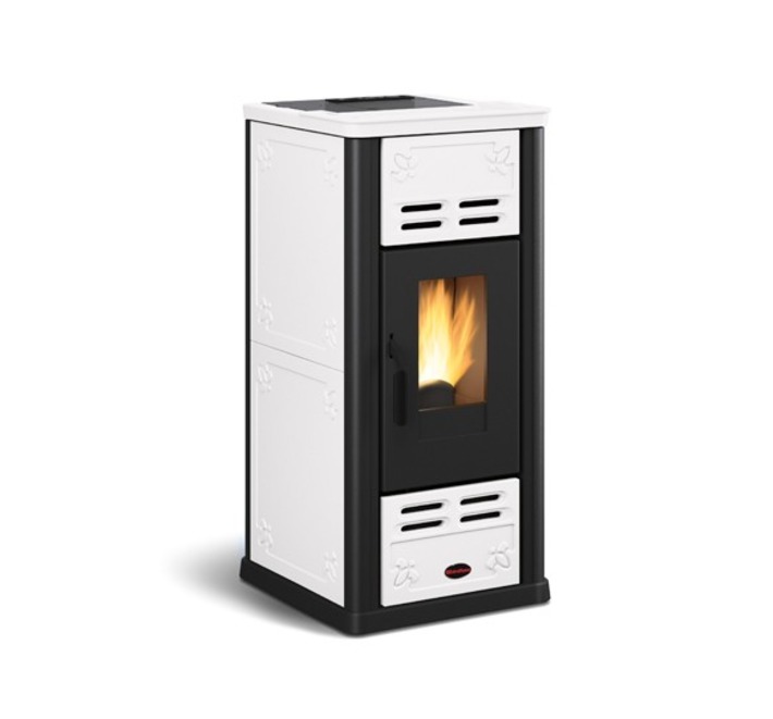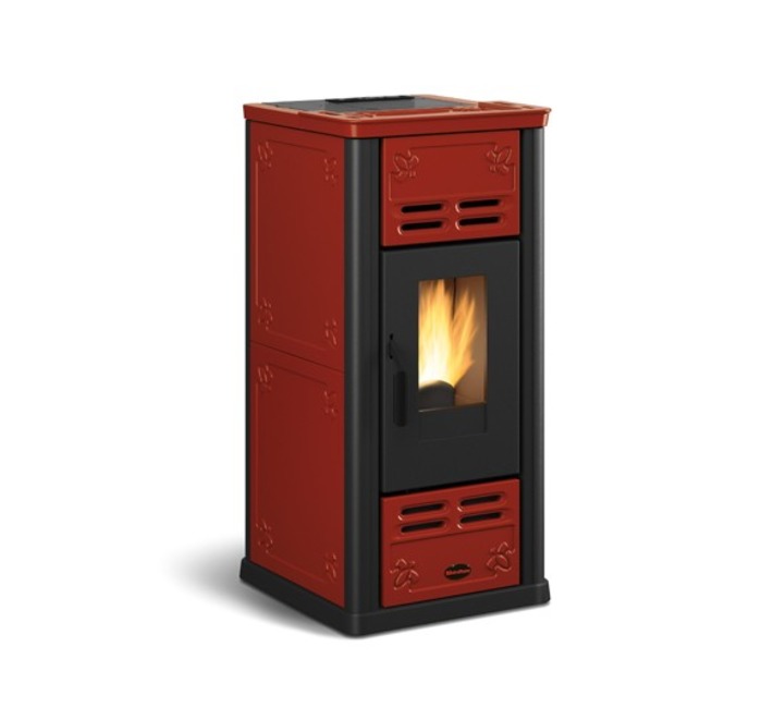 Obudowa piecyka wykonana z ceramiki Maiolica w kolorach: bordo, beżowym, białym lub czarnym. Panel sterujący typu RED. Palenisko oraz drzwiczki żeliwne, wyjmowany popielnik, wbudowana sonda pomiaru temperatury w pomieszczeniu.