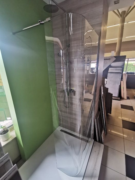 Kabina walk-in ze ścianką giętą oraz ścianką boczną z firmy excellent.