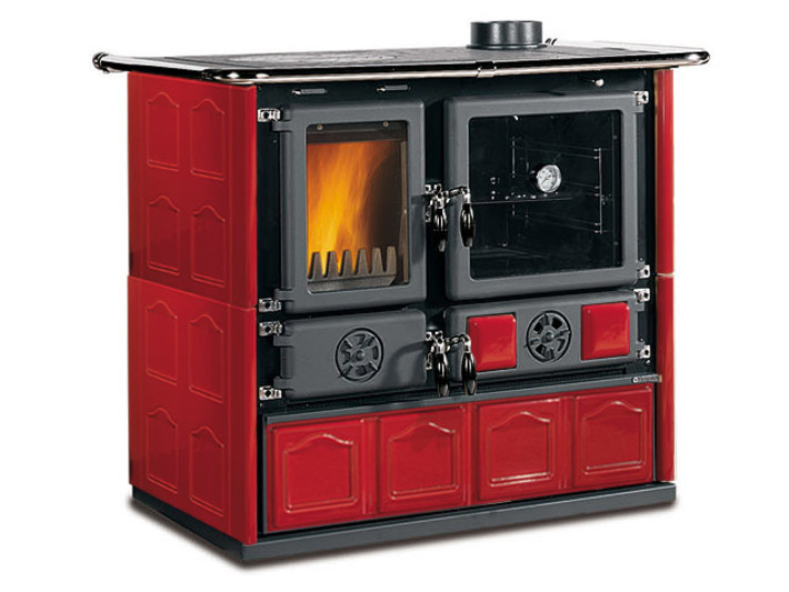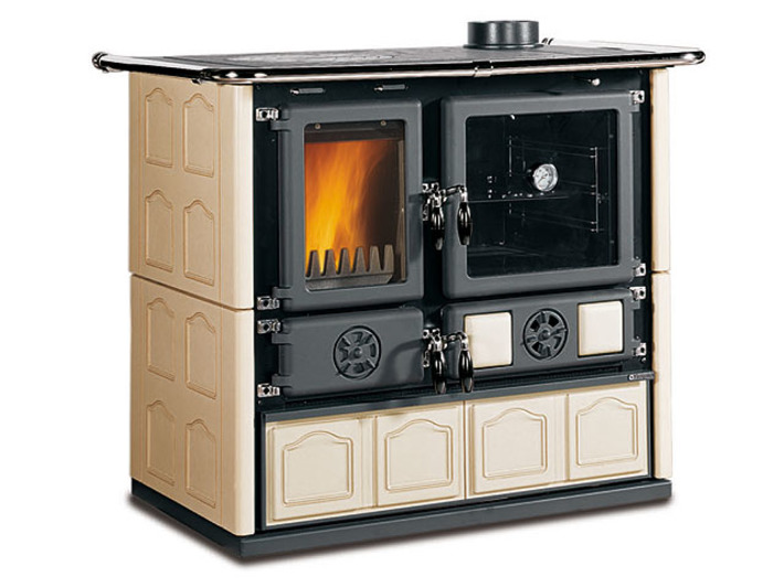 Palenisko i drzwi żeliwne, wysuwany popielnik, górna płyta grzewcza żeliwna z fajerkami, szuflada na drewno. Obudowa wykonana z kafli, dostępna w kolorach: bordowym, białym, cappuccino i beżowym. Powietrze do spalania: pierwotne + system ‚czysta szyba’. Podłączenie wylotu spalin z góry lub z tyłu.