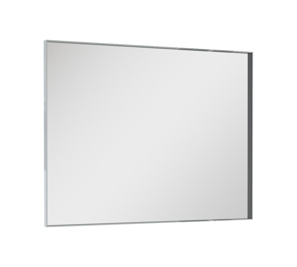 Lustro w ramie aluminium, kolor chrom optic, szerokość ramy 8 mm. Bok lustra 60 cm przystosowany przez nawierty do montażu jednego kinkietu na środku. Bok lustra 80 cm przystosowany przez nawierty do montażu dwóch kinkietów po bokach lub jednego na środku.
