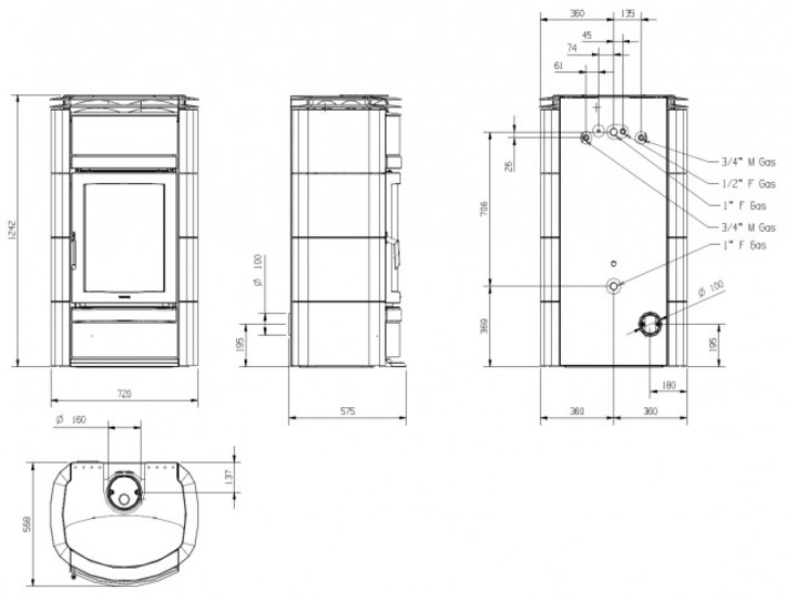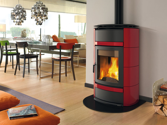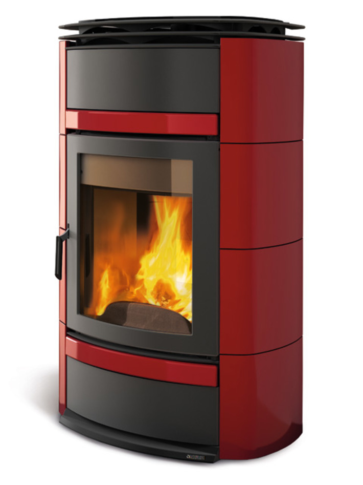 Piec z płaszczem wodnym przeznaczony do pracy w układzie zamkniętym, maksymalne ciśnienie robocze 2,5 bara. Płaszcz wodny wyposażony w układ chłodzenia na zaworze dopuszczającym z sondą, optymalna temperatura pracy 70-75 ˚C. Palenisko i drzwiczki żeliwne, wysuwany popielnik, szyba półokrągła. Obudowa wykonana z kafli Majolica, dostępny w kolorach: bordowy i srebrny. Powietrze do spalania: pierwotne + wtórne + system ‚czysta szyba’. Podłączenie wylotu spalin z góry, możliwość bezpośredniego podłączenia powietrza zewnętrznego.