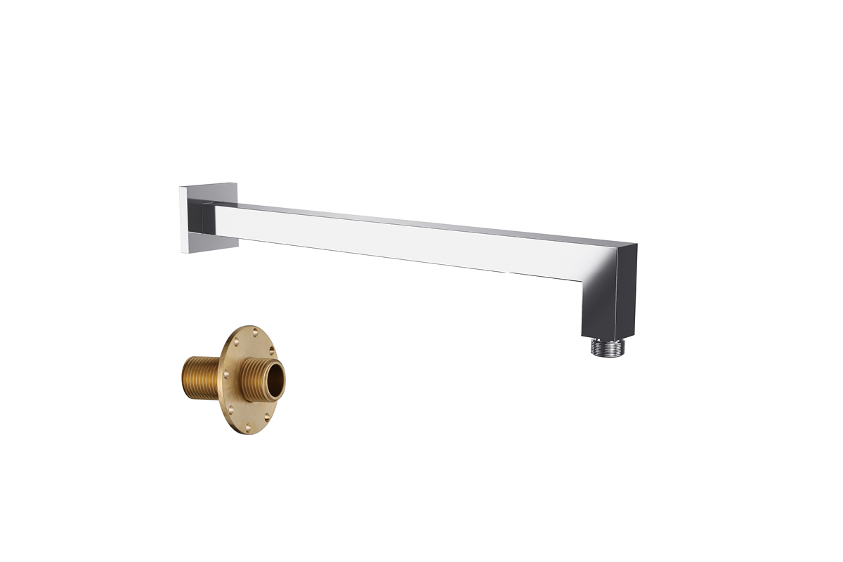 Ramię prysznicowe ścienne, kwadratowe wykonane z wysokiej jakości mosiądzu pokrytego chromem. Produkt posiada elegancką rozetę do montażu ściennego. Ponadto ramię ścienne wyposażone jest w dodatkowy element montażowy zapewniający lepsze zamocowanie produktu w ścianie.