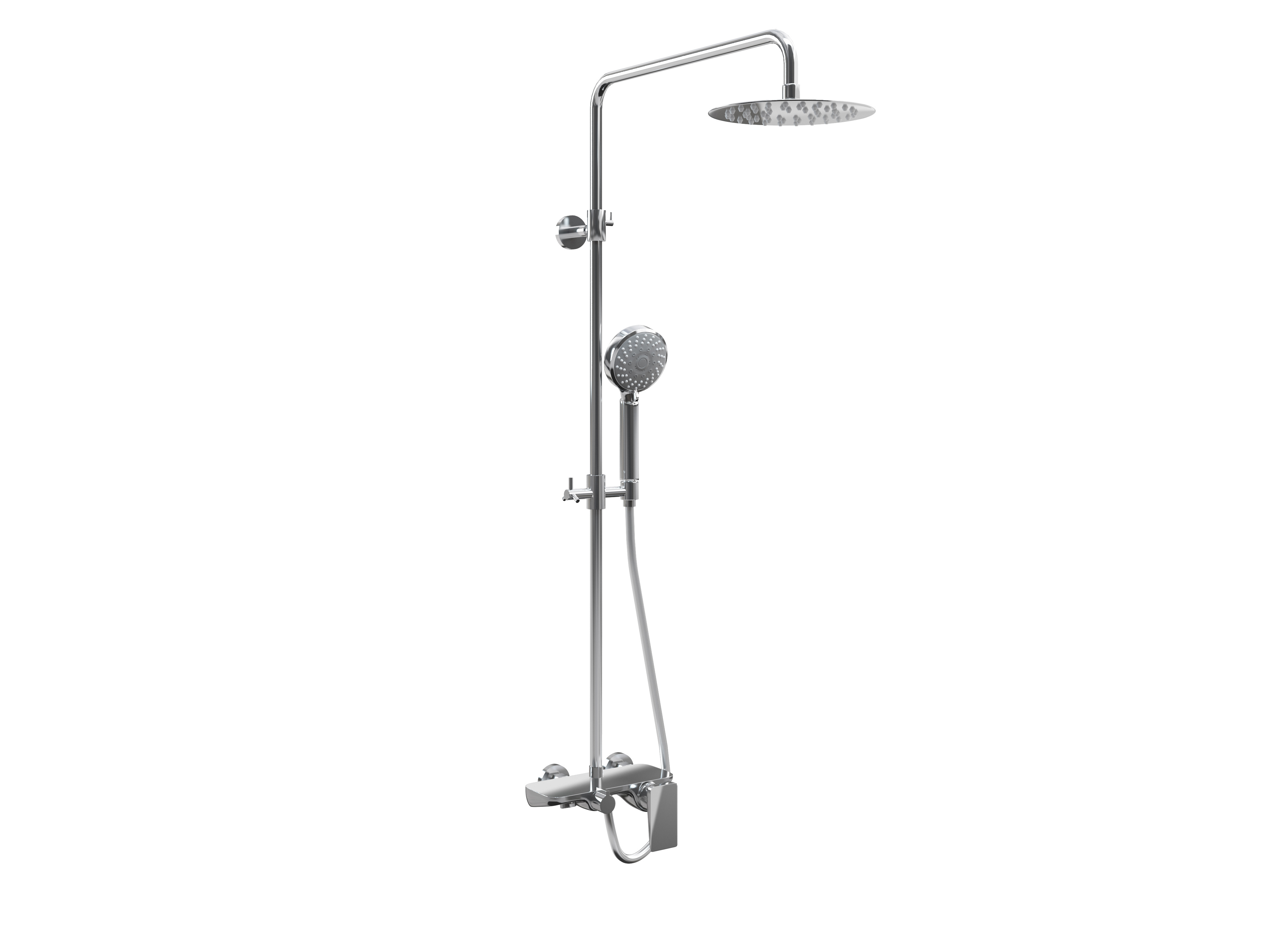 Zestaw ten składa się z baterii prysznicowej z wylewką wannową, dzięki czemu bateria ta może być stosowana z powodzeniem także do wanien z parawanem. Bateria posiada również sporą płaską powierzchnię, która z powodzeniem służy jako pole odkładcze na podstawowe kosmetyki kąpielowe (żel pod prysznic, szampon).